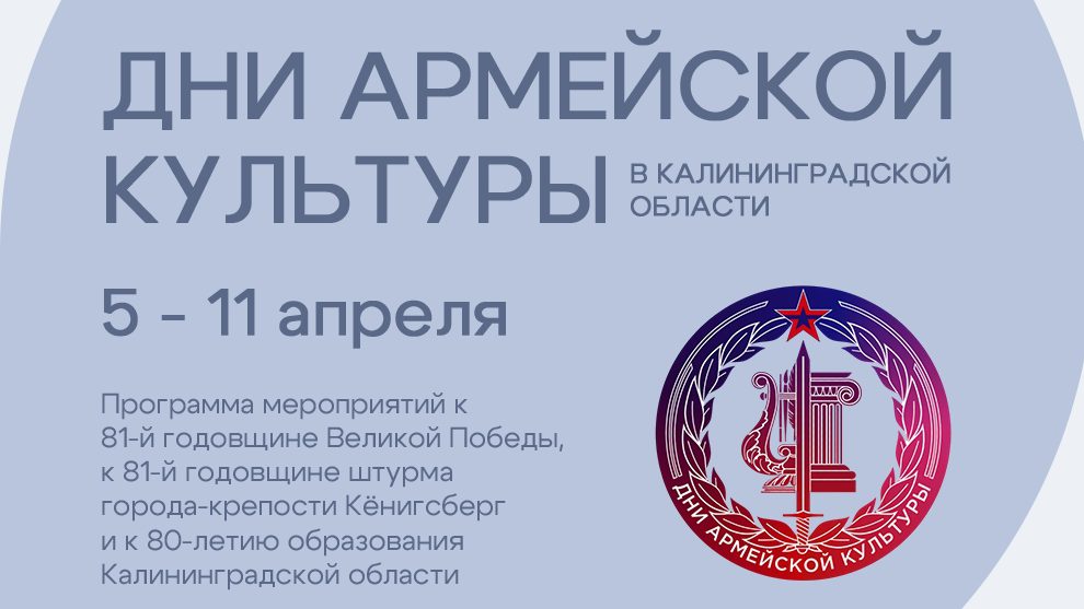 5 апреля 12:00 — Торжественное открытие Дней армейской культуры в Калининградской области (0+) (Музей «Форт №5», вход свободный).