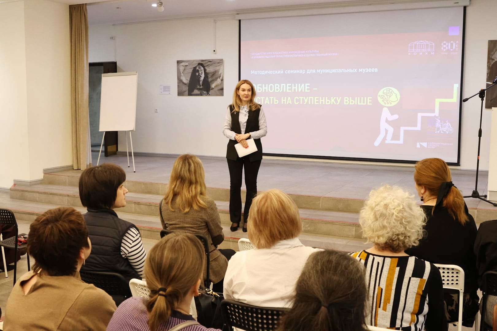 В рамках программы были подведены итоги Областного конкурса «Обновление». С докладом по теме «Музей как бренд: выбор стратегии развития» выступила заместитель директора КОИХМ Лианна Вердян. Методист КОИХМ по взаимодействию с муниципальными музеями Галина Акимова рассказала про городской конкурс «Обновление».