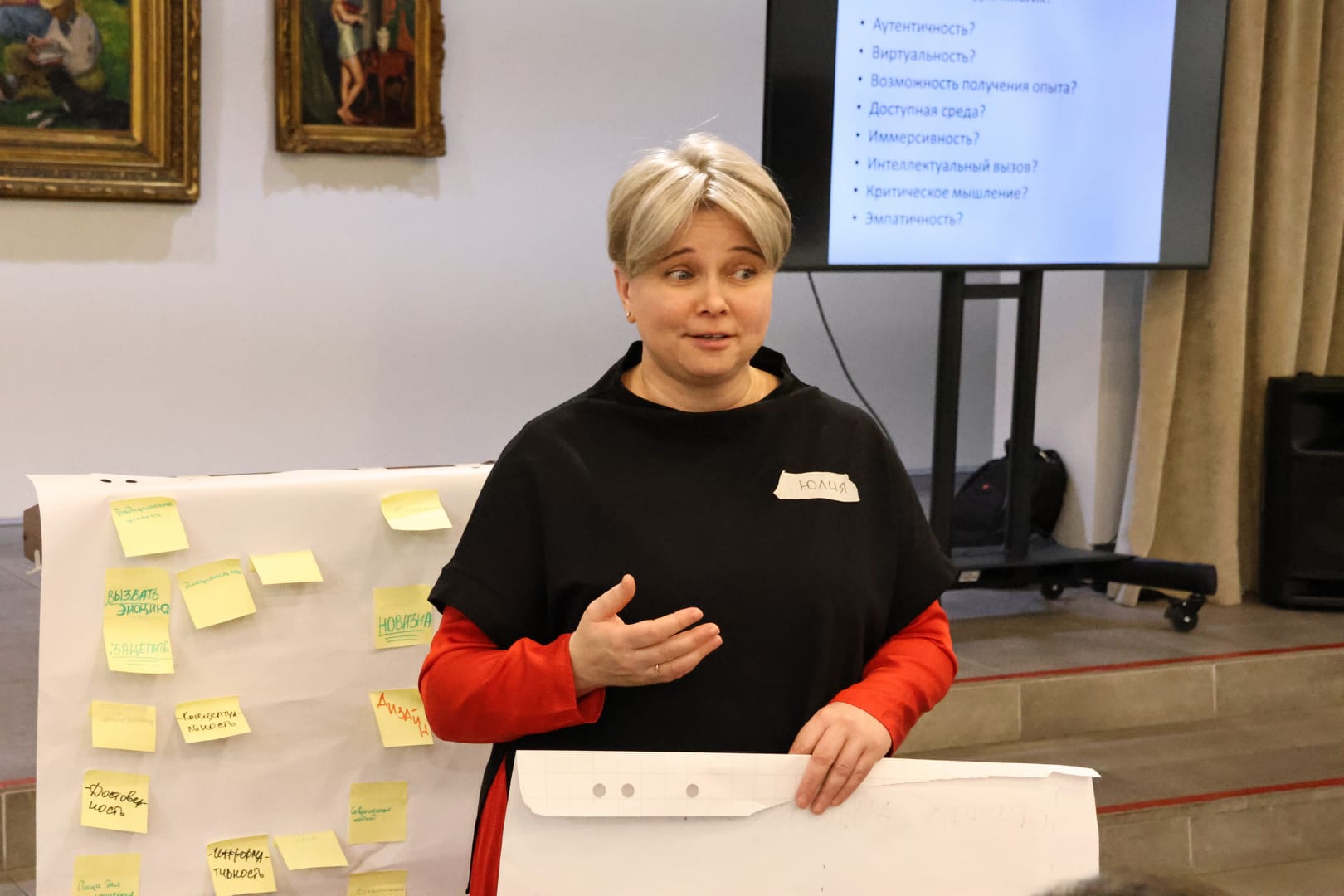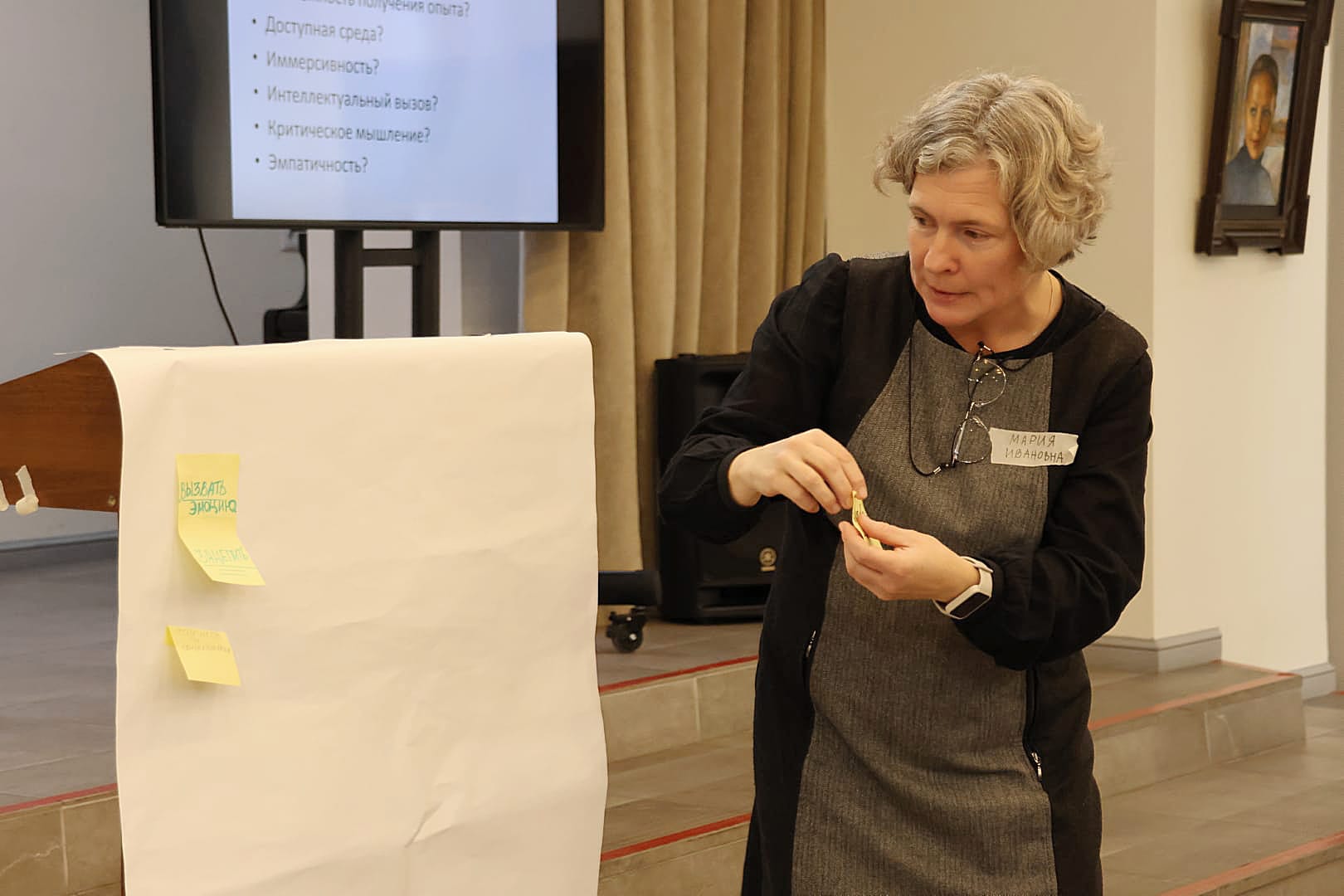 Практическую часть семинара провели Юлия Грекова, заместитель директора лицея № 49, и Мария Кохановская, заместитель директора школы № 28, кандидат географических наук. Под их руководством сотрудники музея, работая в командах, обсуждали концептуальное оформление будущей выставки.